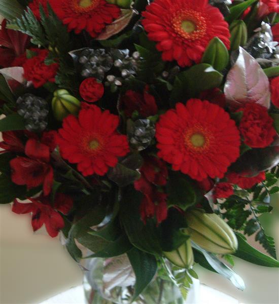 The Festivity bouquet is a beautiful arrangement filled with only the finest Christmas Roses, Germinis and Carnations. Complimented with festive foliage.