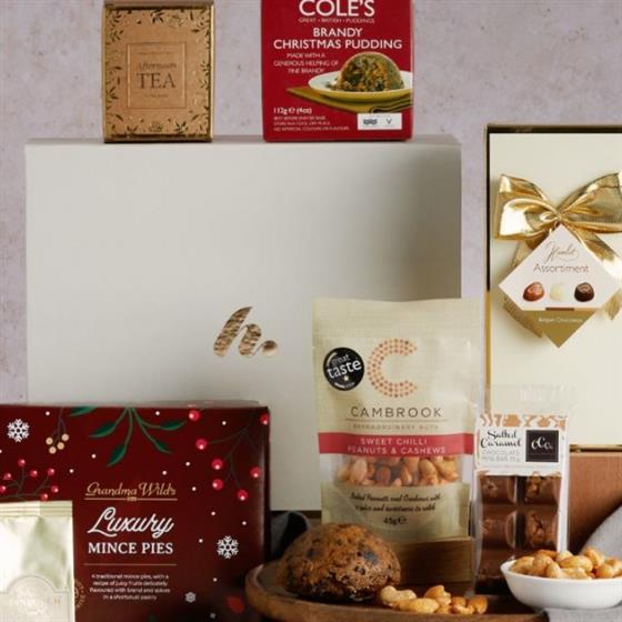 There's delicious coffee to start the day, and mince pies with just the right balance of buttery pastry and spiced mincemeat. We've even included a gorgeous little brandy Christmas pudding for a little indulgence, plus delicious chocolates and nuts to snack on and share with visiting friends and family.